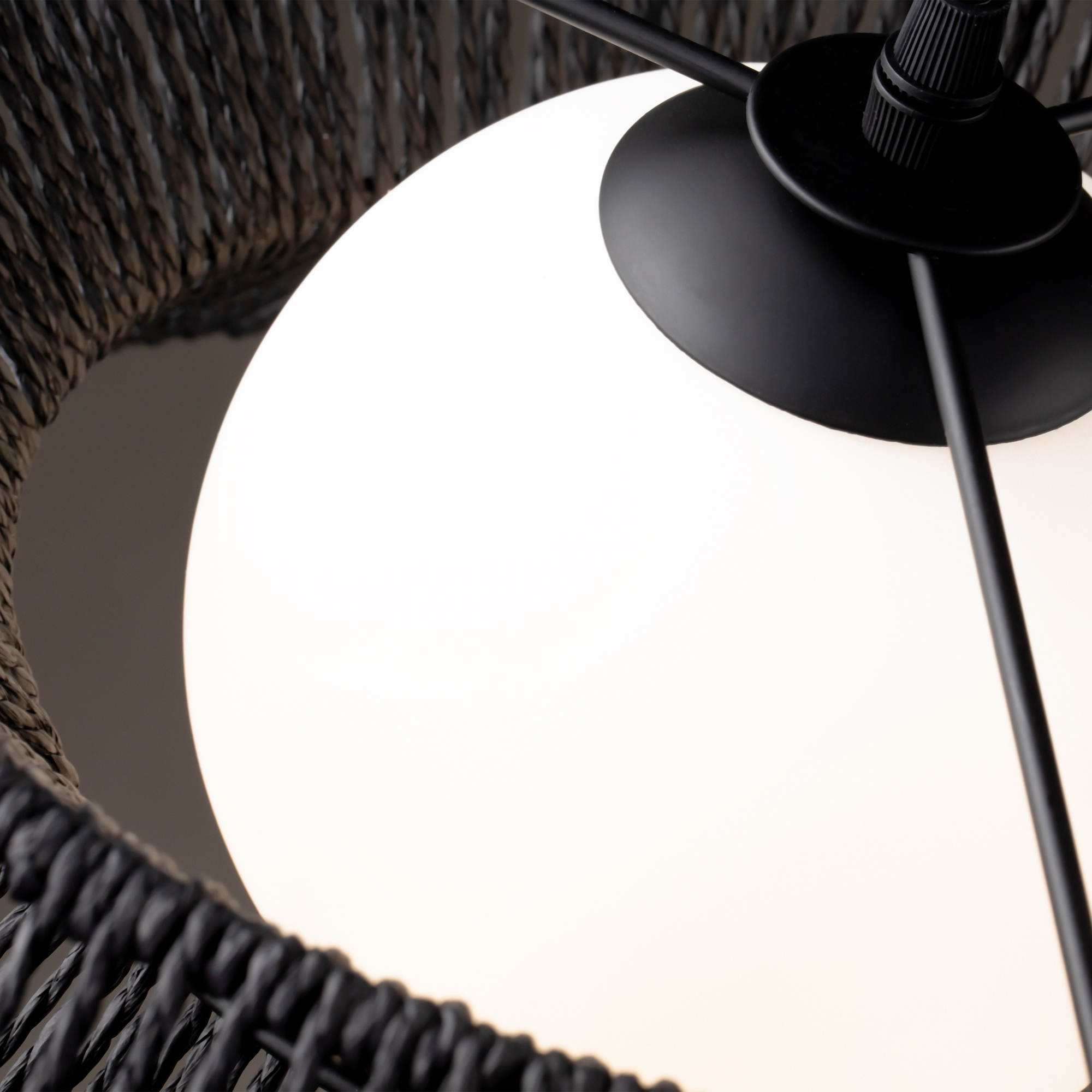 Загородный стиль. Абажуры: металл + бумажный шнур. Цвета: чёрный, молочный и трендовый зелёный (новинка серии Cottage). Матовый плафон с мягким светом. Эко-дизайн для дома, кафе, офиса.
