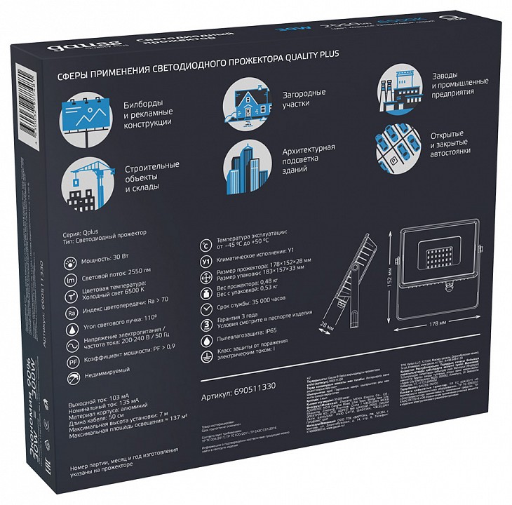 | Альтернативное название | Настенно-наземный прожектор Gauss Qplus 690511330 |